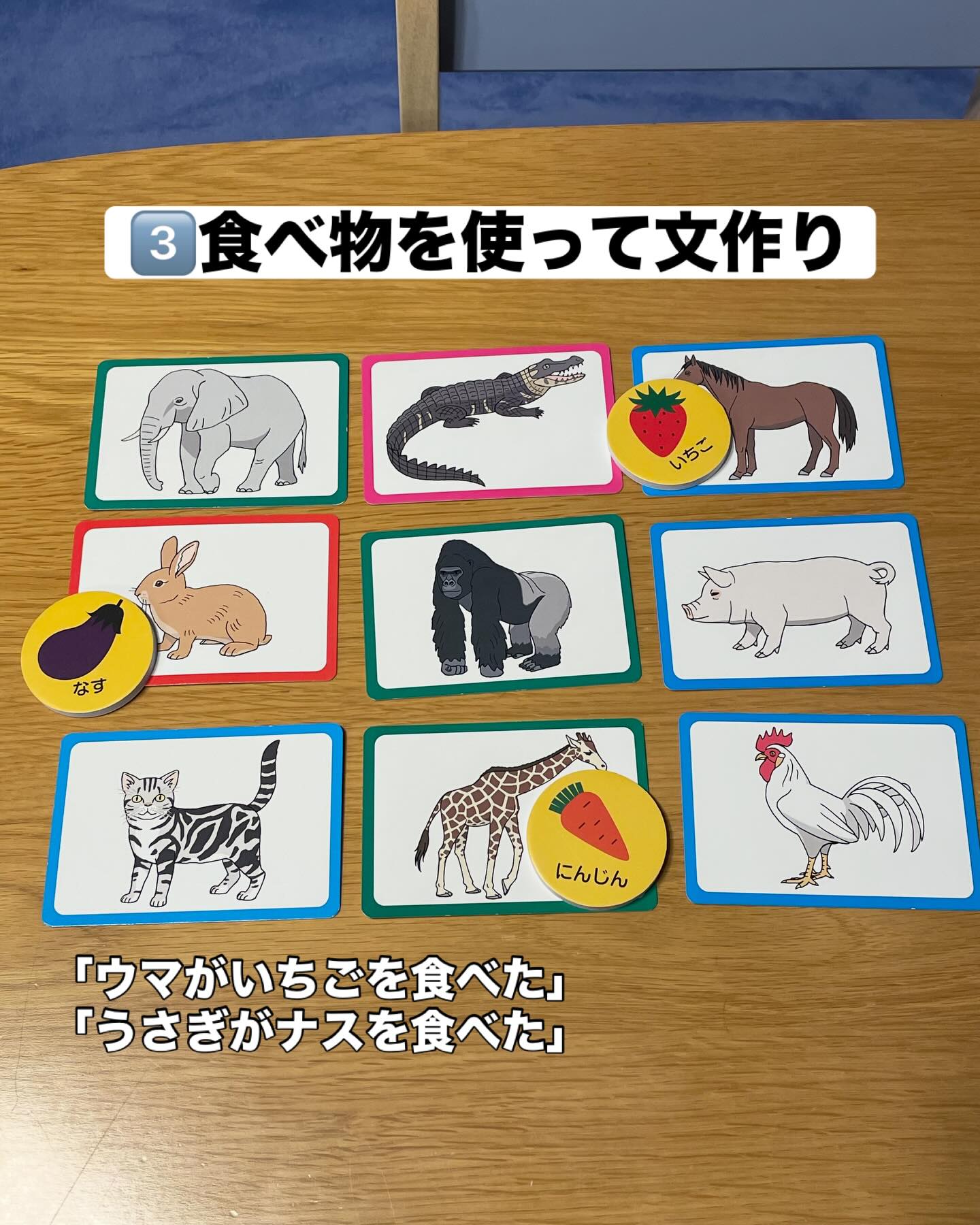 今回は3語文で伝えられるようになってきたお子さんや、ひらがなに少しずつ親しみを持ってもらいたい段階のお子さん向けのアレンジ️