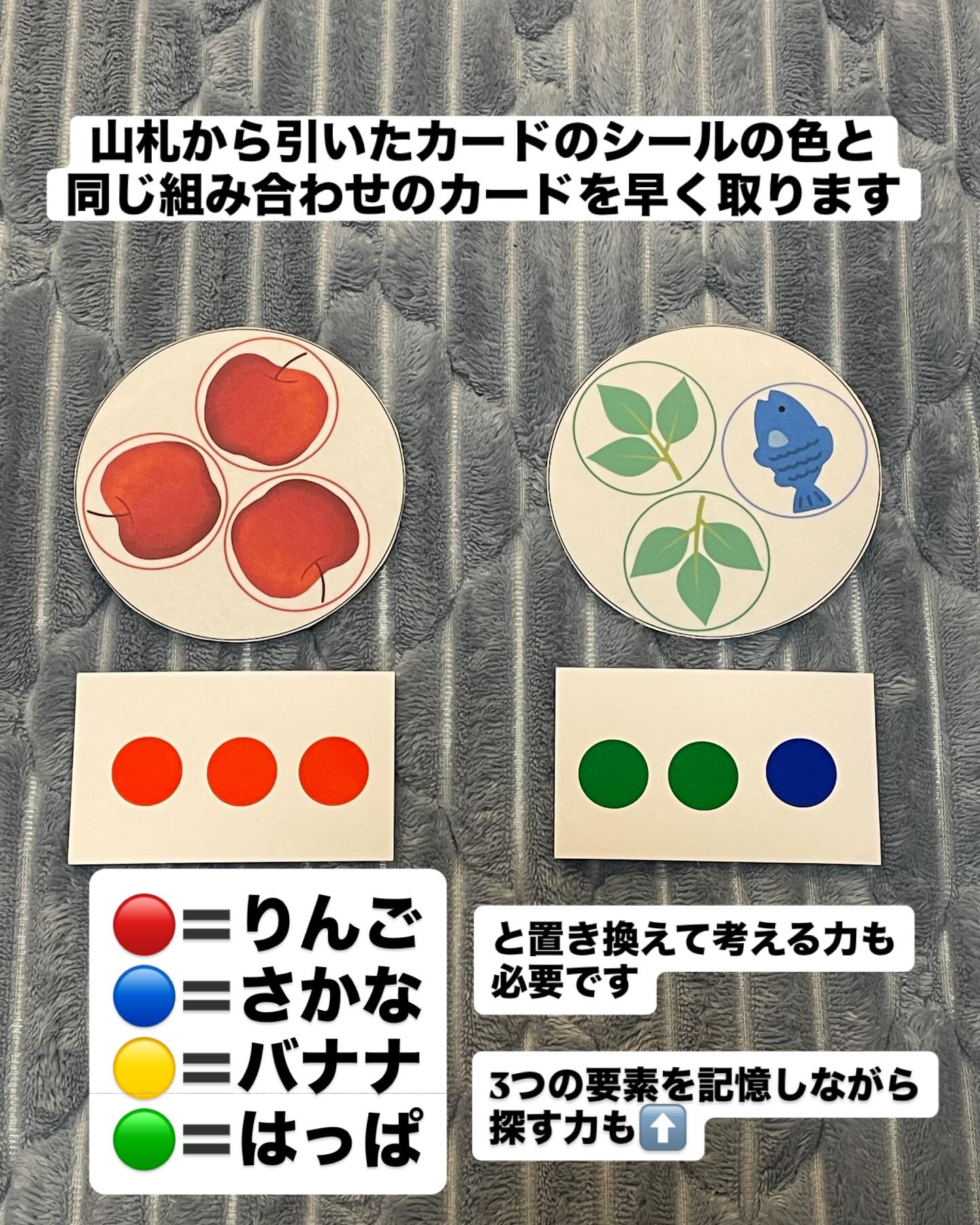 見る、考える、覚える、話す これを楽しみながら自然とチャレンジできてしまうゲームです♩