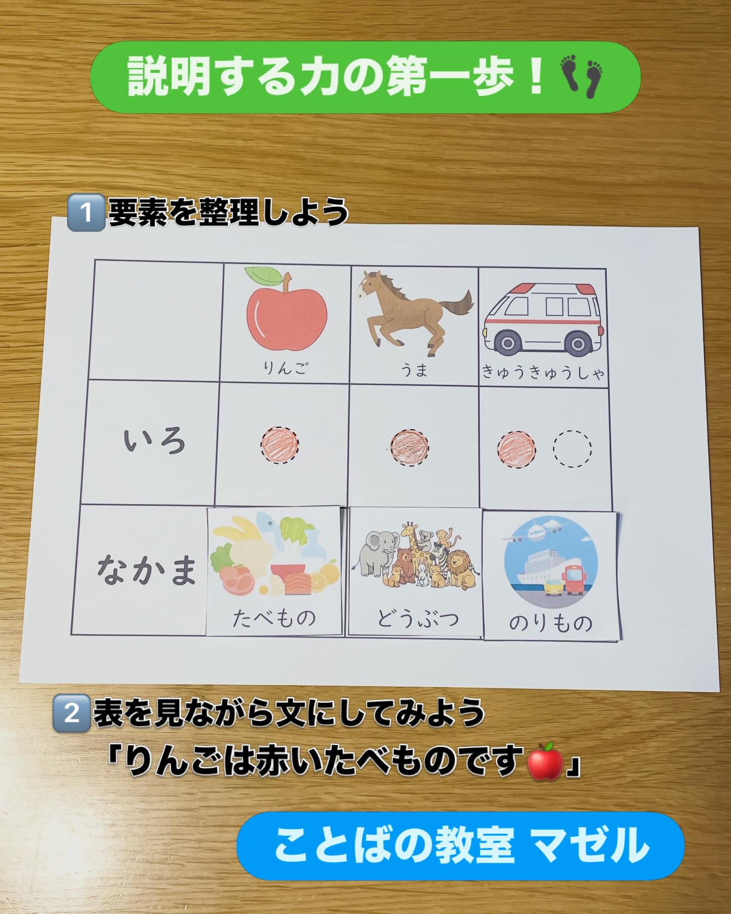1個ずつ確認したあと、表を縦に見ながら文にしていきます🗣️